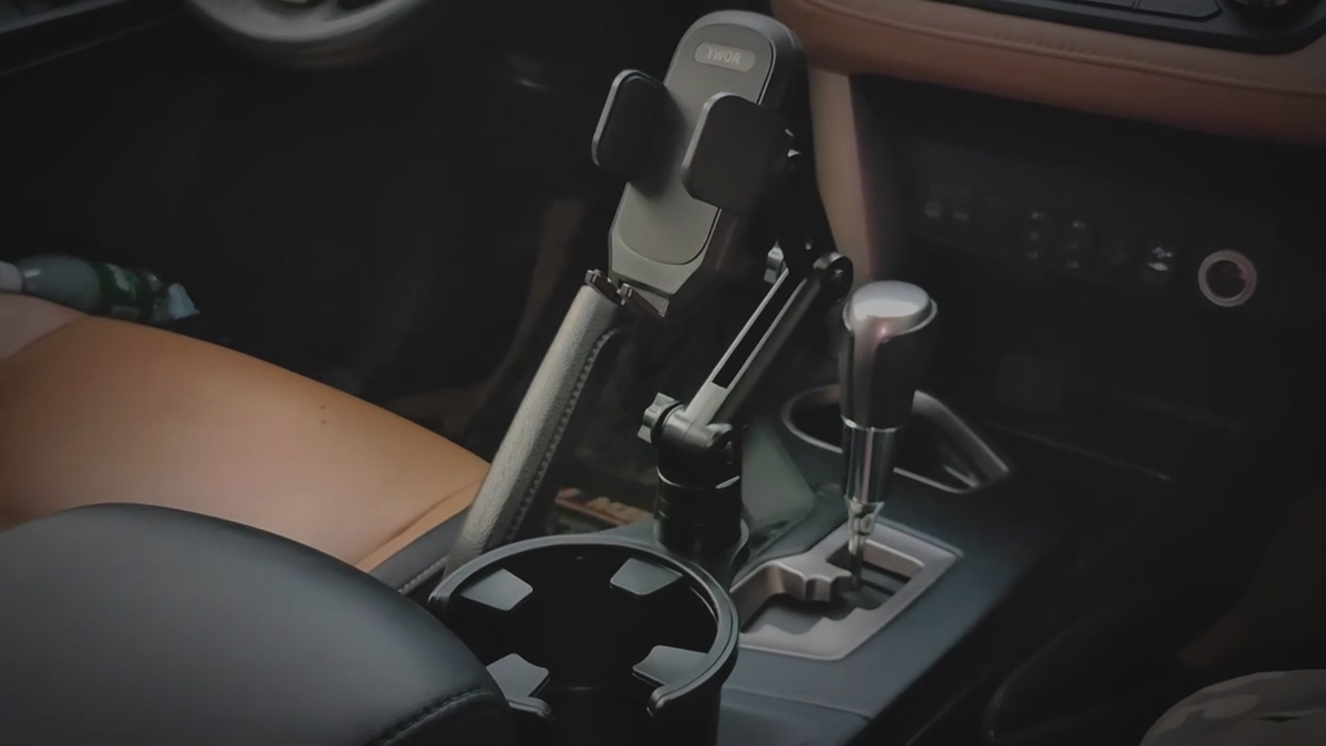 • Function: Cup holder, phone mount, small-item storage